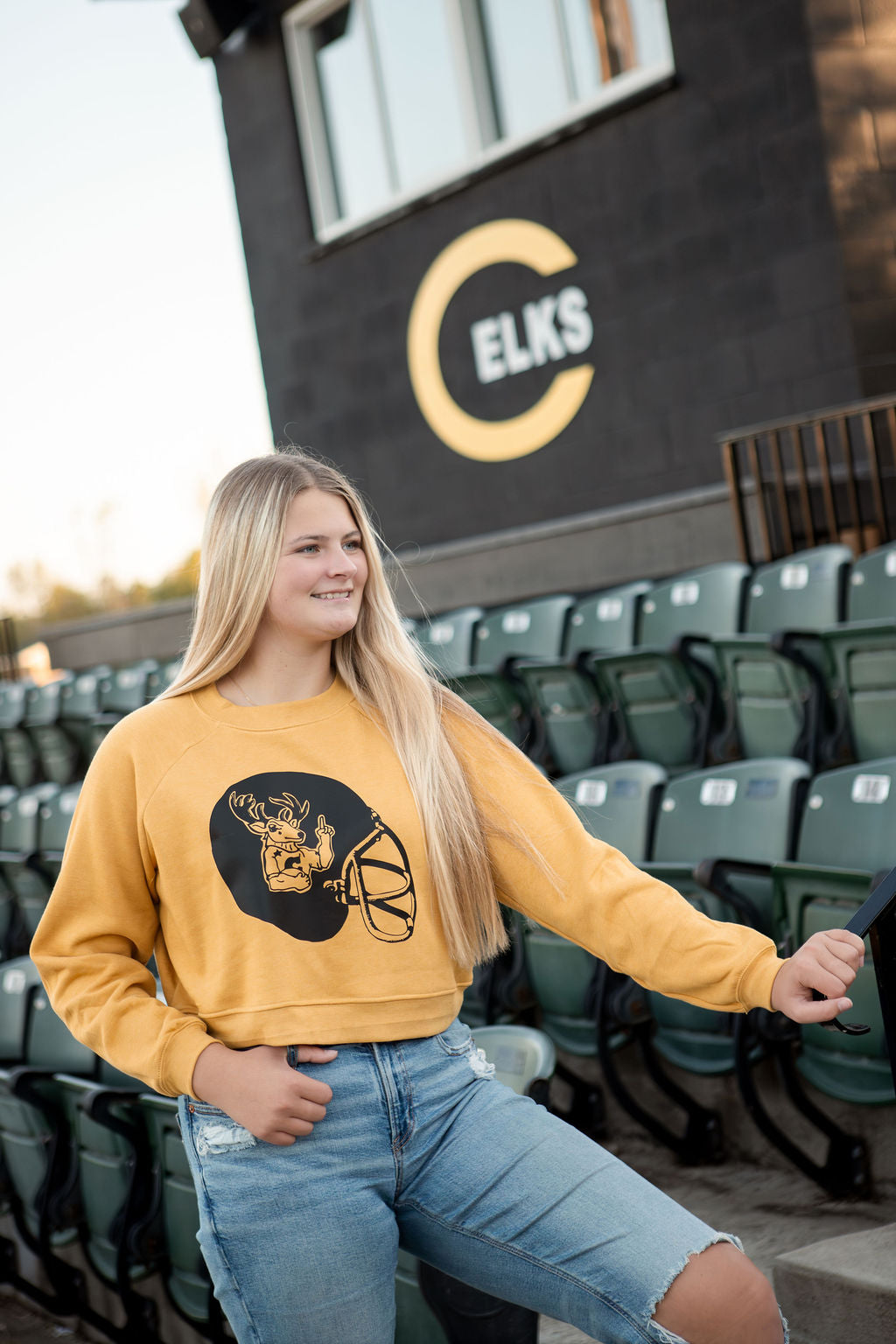 Adult | Elk Football Helmet Crop Crew Sweatshirt