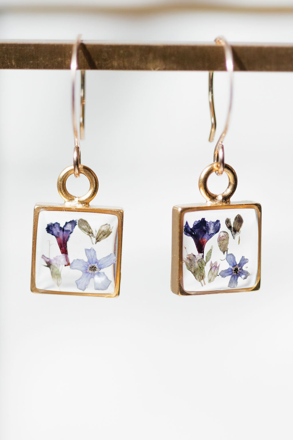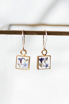 Square Gold + Blue Flower Earrings by Rebecca Noel Designs