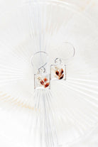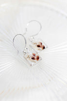 Sweet and feminine, these dainty silver squares are filled with grains. Bits of glass glitter add additional shine. They are filled with glossy resin and hang on handmade sterling silver ear wires.