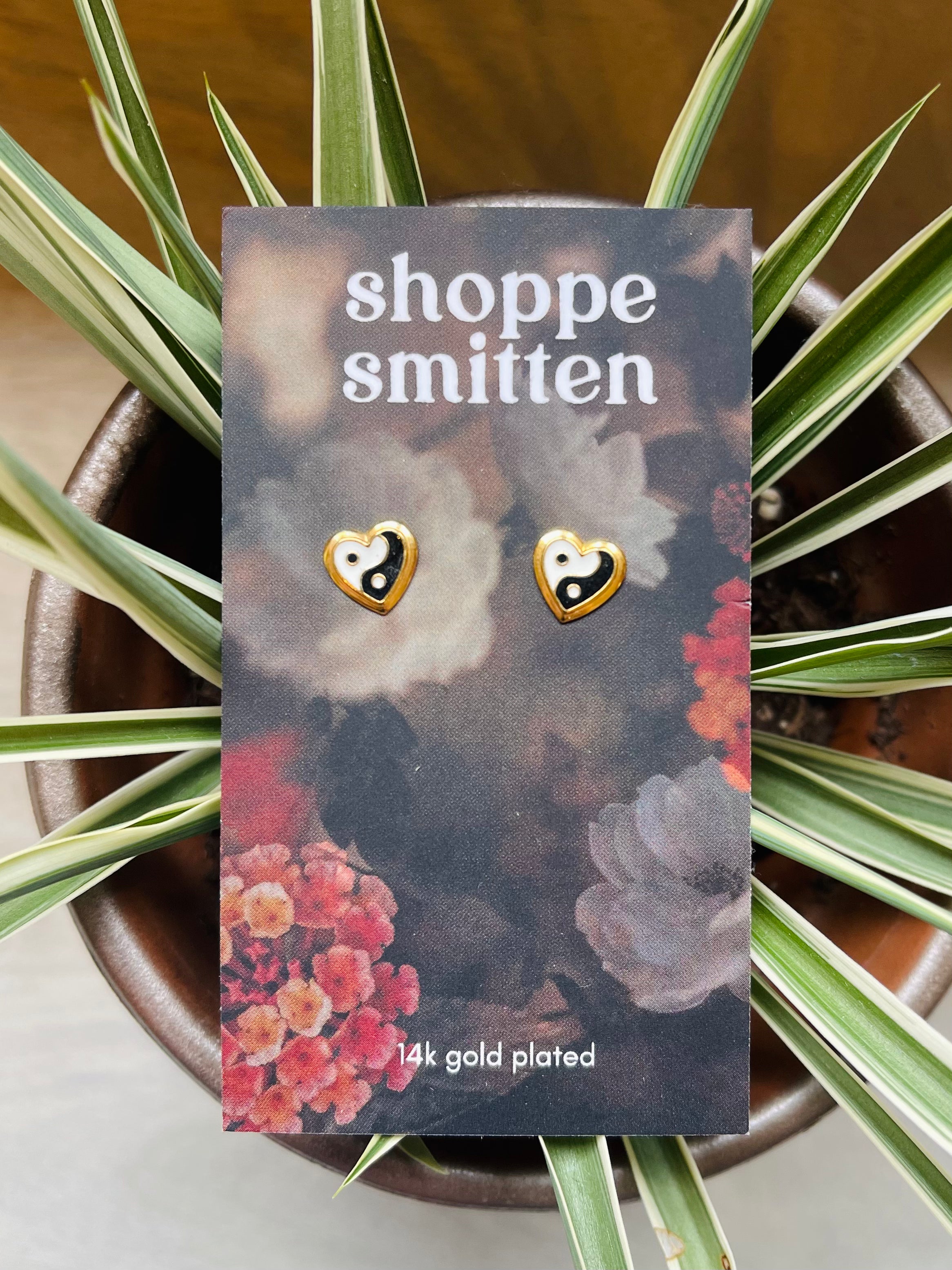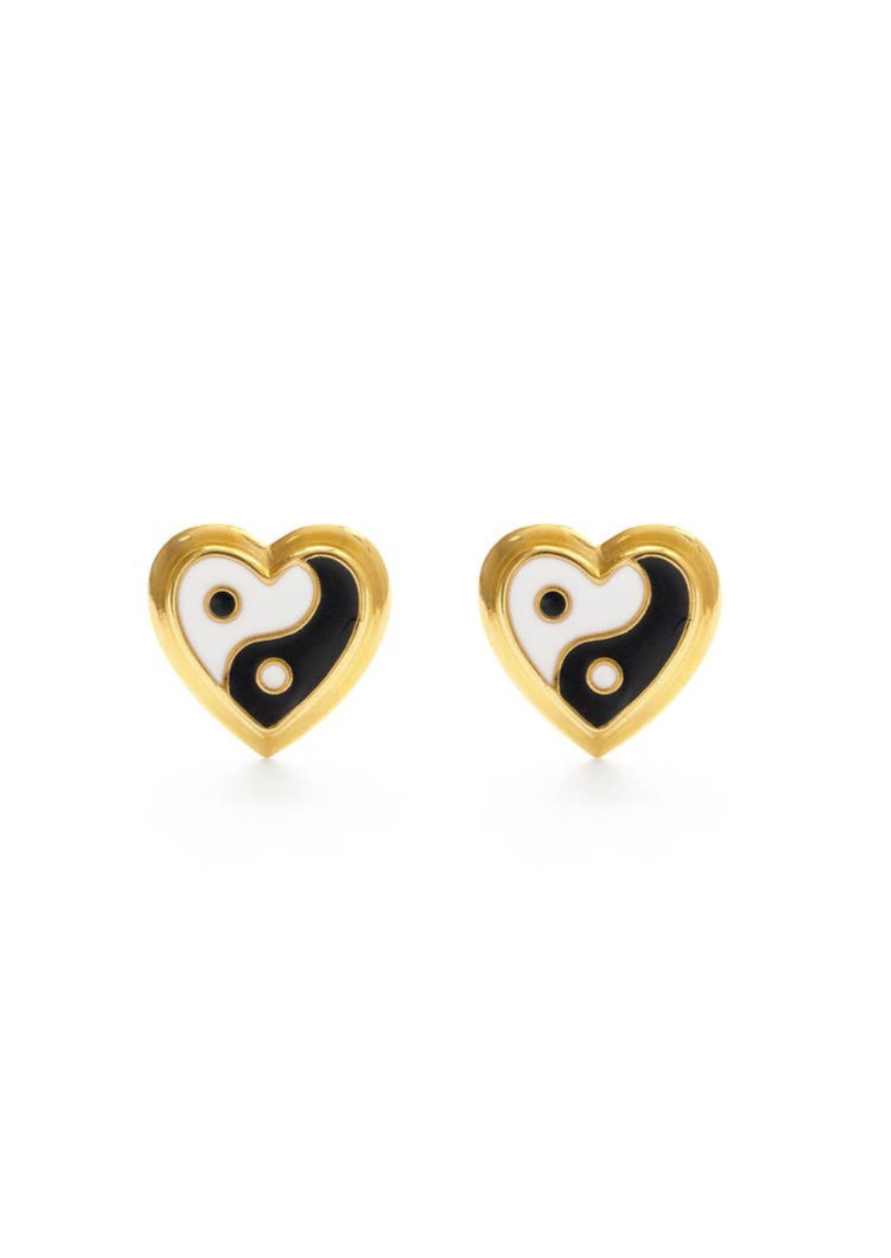 Yin Yang Heart Stud Earrings