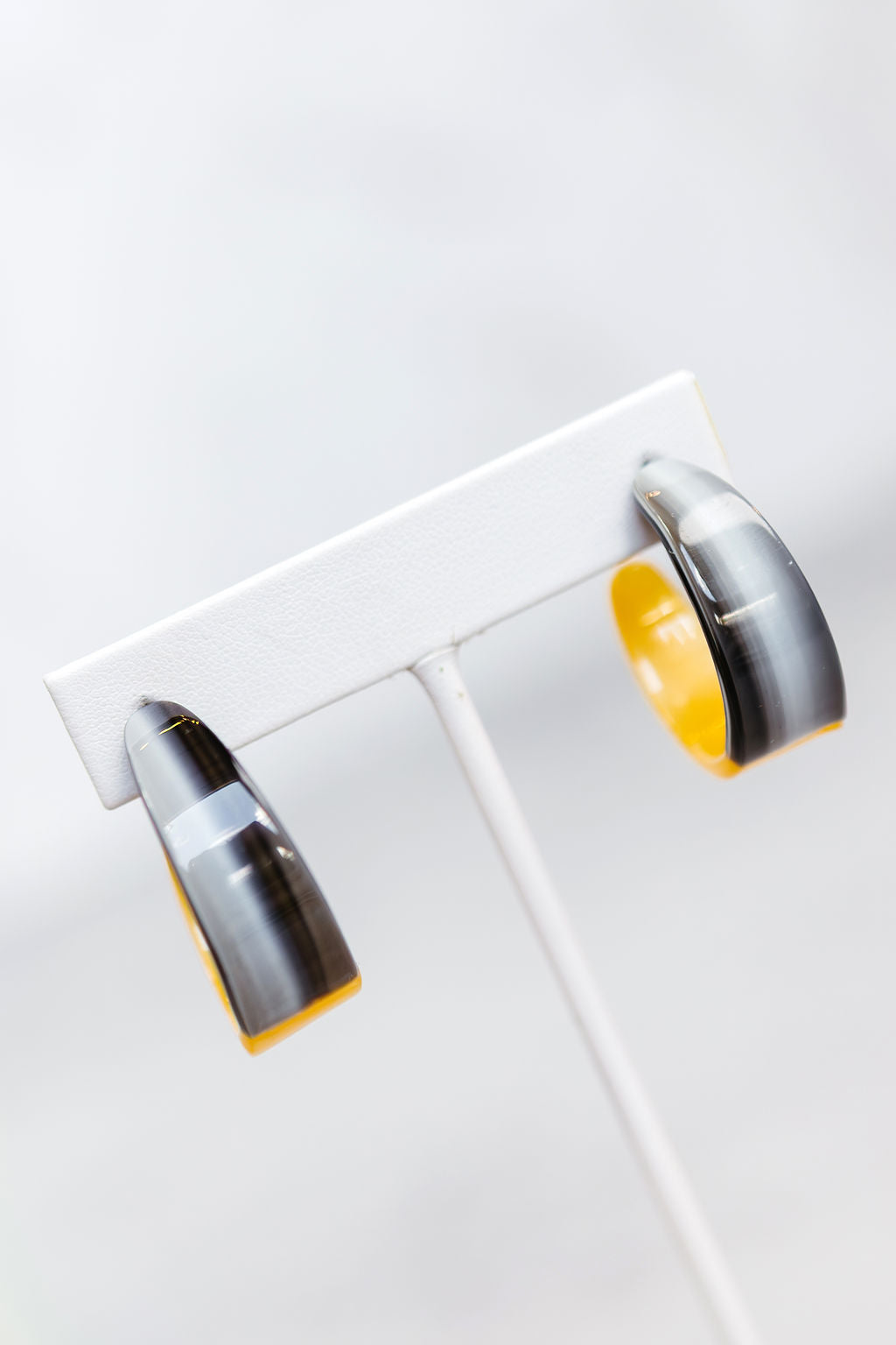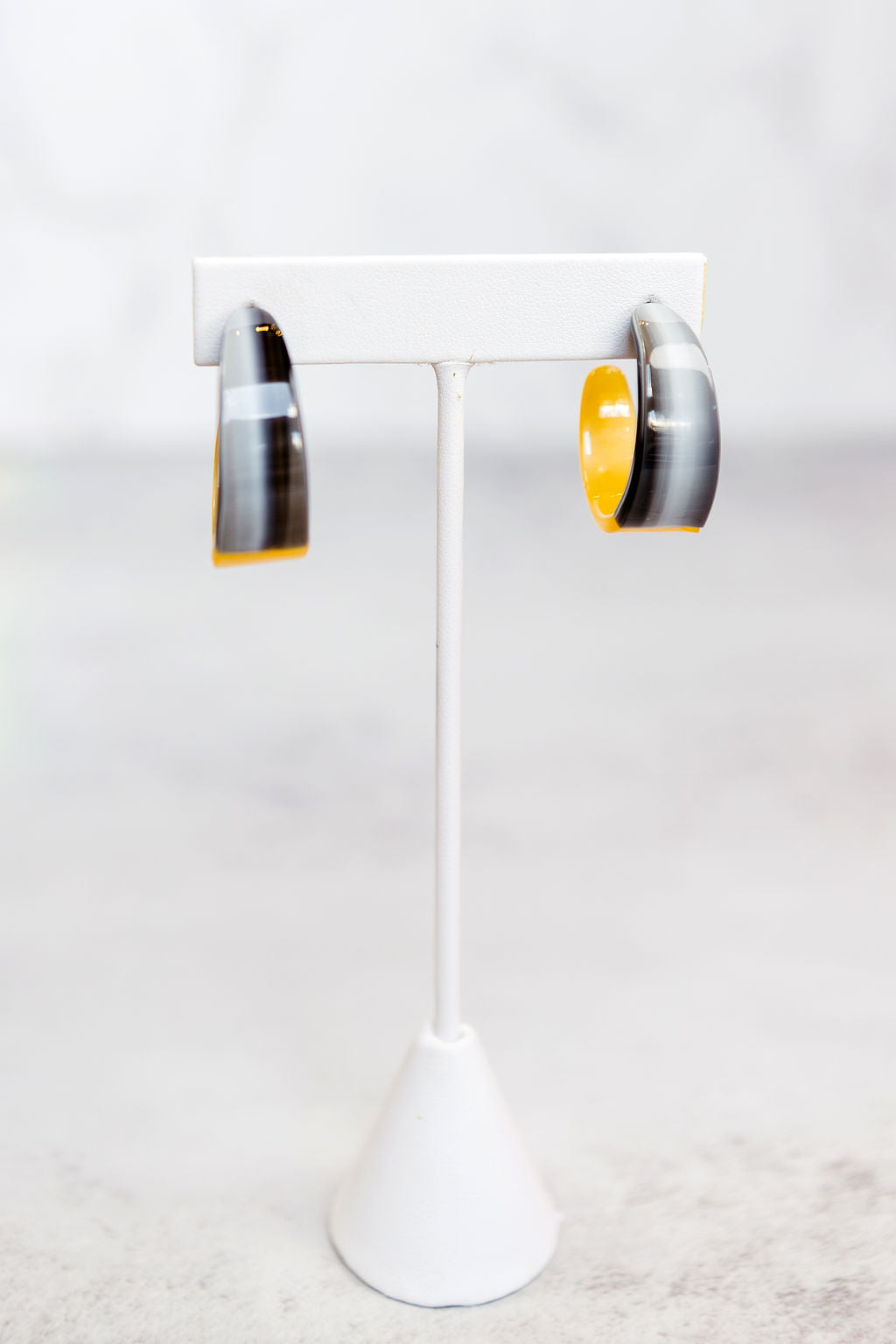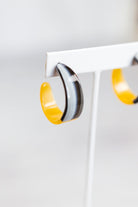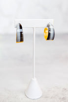 Playful blend of warm mustard hues and subtle tones makes them the perfect accessory to brighten any outfit. Lightweight and eye-catching, these hoops bring a fun twist to your everyday style.