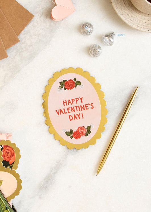 Unlock the magic of love with our Valentine's Locket Specialty Greeting Card! This sweet card features a charming locket shape with gold foil scalloped edges, ready to hold the sentiment of your affection. Featuring romantic rose illustrations, it's the perfect way to express your love on Valentine's Day. Share the joy of cherished moments and everlasting love with this unforgettable card.
